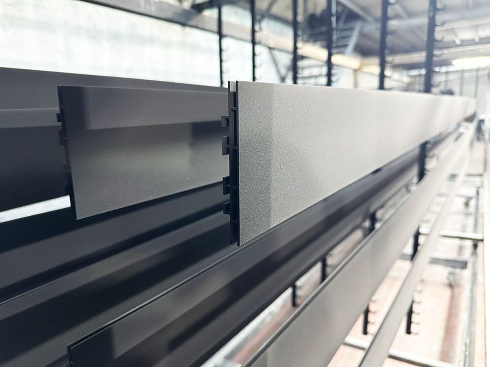 Elektrostatik toz boyama tesisimiz son teknolojiye sahip otomatik sistemiyle değişik parlaklıklardaki RAL renklerinin yanı sıra müşterilerimizin talep etmiş olduğu özel renk profillerin de işlemleri gerçekleştirilmektedir. Yatırımı tamamlanan havuzlarımızda 8060 mm uzunluğa kadar profiller işlem görebilir.